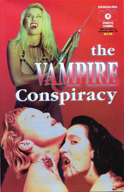 Draculina Photo Comic 2: Vampire Conspiracy: (1998) Full color cover, b&w interiors on glossy paper, 48 pages comic size. Draculina Photo Comics takes actual photos from the movie, adds text and recreates the entire movie in comic book form with actual photos. Each issue covers a different movie. This issue covers the 1995 movie The Vampire Conspiracy by Geoffrey de Valois.