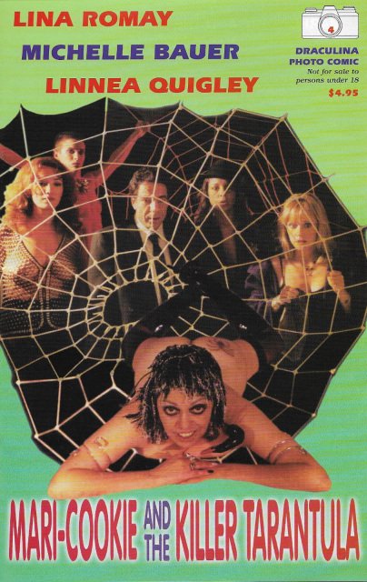 Draculina Photo Comic 4: Mari-Cookie and the Killer Tarantula: (1999) Full color cover, b&w interiors on glossy paper, 48 pages comic size. Draculina Photo Comics takes actual photos from the movie, adds text and recreates the entire movie in comic book form with actual photos. Each issue covers a different movie. This issue covers MARI COOKIE AND THE KILLER TARANTULA: Scream queens Michelle Bauer and Linnea Quigley star in this sexy mystery from cult filmmaker Jess Franco. When several local people turn up missing, Sheriff Marga (Bauer) investigates. Soon she finds herself thrust into the lurid world surrounding the mysterious nightclub owner Tarantula (Lina Romay). Mari Cookie and Killer Tarantula also stars Amber Newman and Robert King. $7